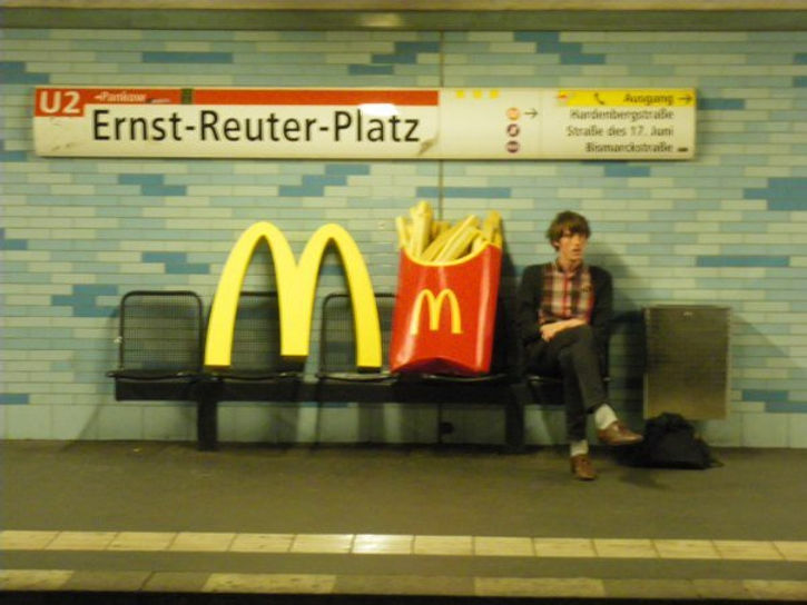 A rolling activist project as part of 48 hours Neukölln, Berlin. Looking at marketing and multinationals in the public sphere and the relationship this has with former East and West . The paper folded products circled the Ubahn for 48 hours during the festival.